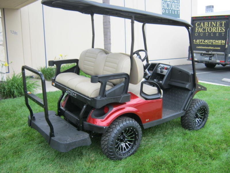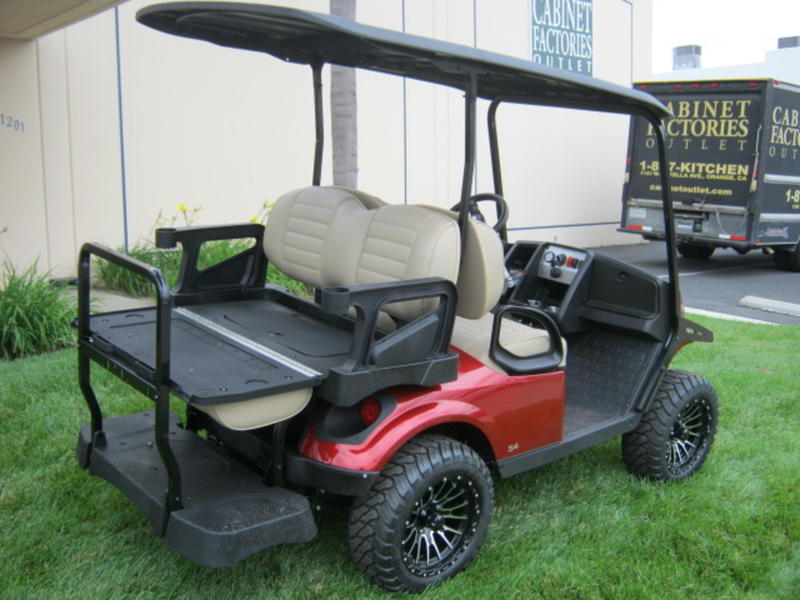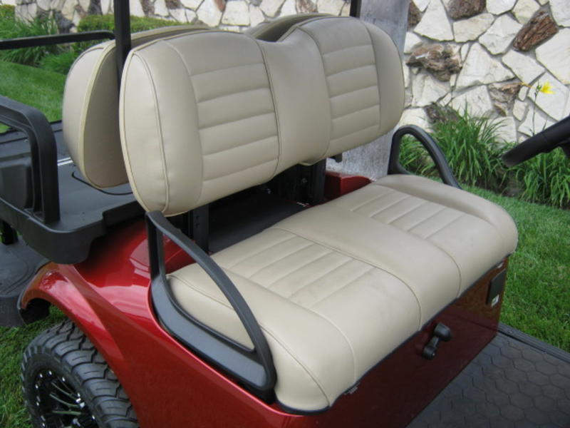 Comfortable ride for 4 passengers with a rear-facing golf cart seat featuring convenient enclosed storage for all of your adventures.